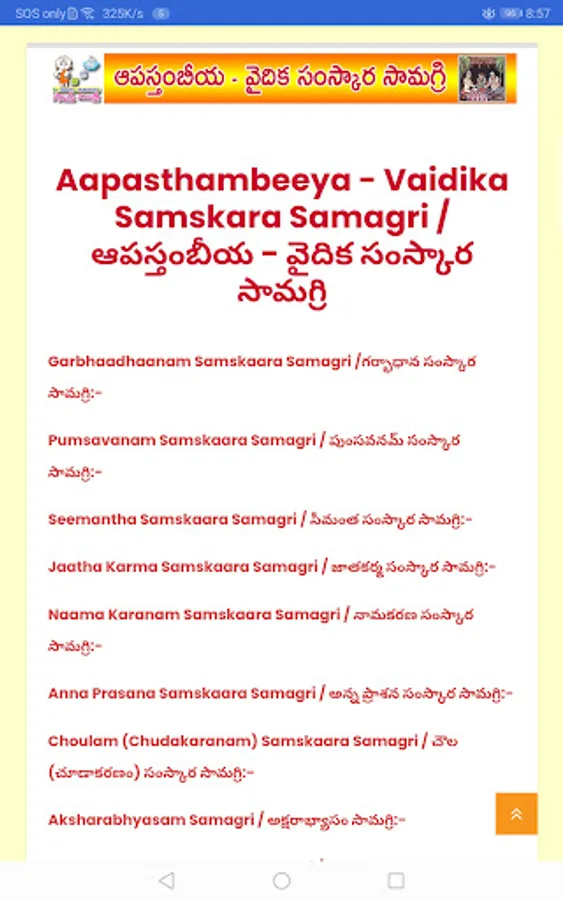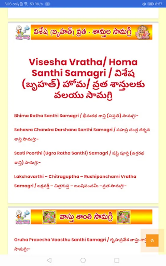 Included Vaidika Samagri List's (Telugu) Included (Ganapathi Homa, Sudarshana Homa, Aayushya Homa, Nakshatra Santhi, Navagraha Santhi, Rudra Homa, Chandi Homa, Manyu Homa etc......).