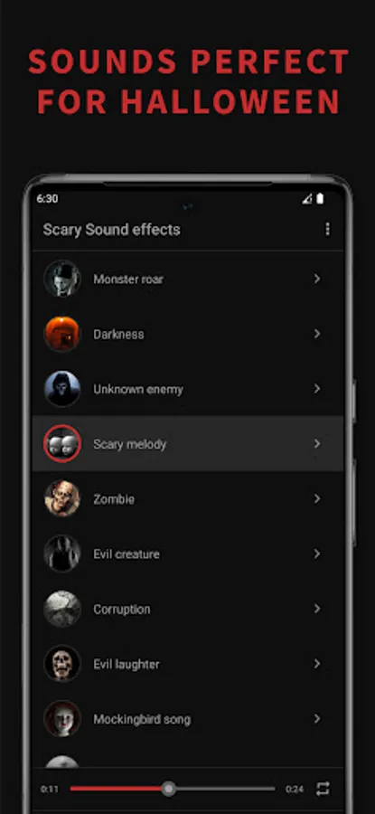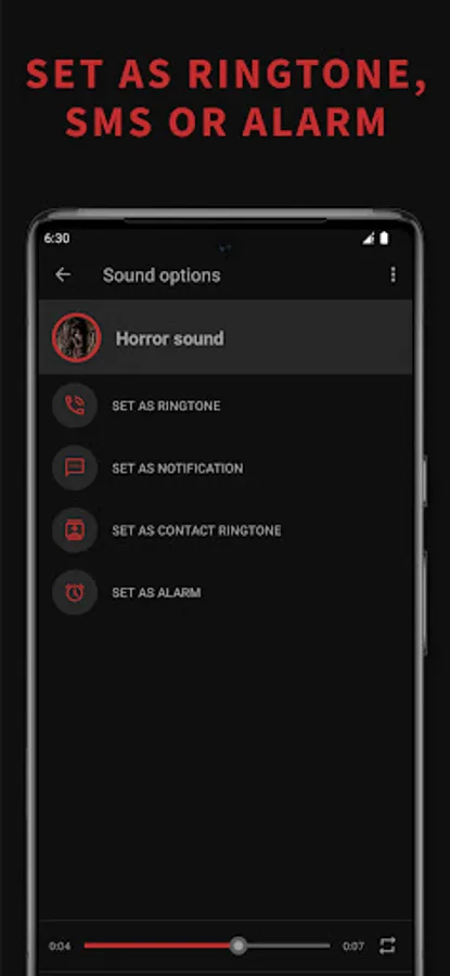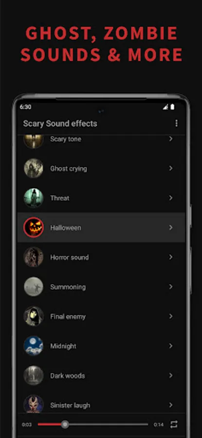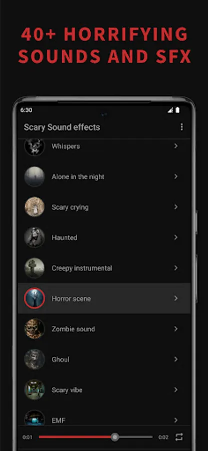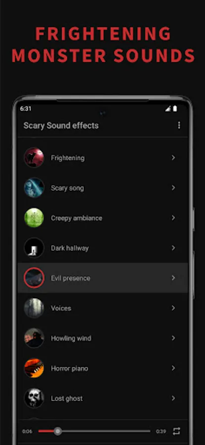 Scary sound effect is a soundboard application that offers the scariest sound effects and horror ringtones. Wide collection of creepy sounds such as ghost talk, evil laughter's, witch screams, zombie and sci-fi monster sounds effects, is perfect choice if you want to have some horror sounds on your phone. Most terrifying horror sounds will show you the true meaning of fear. Set some spooky sound effect as your ringtone, contact ringtone, sms or alarm and you will create scary ambient around you every time your phone rings.