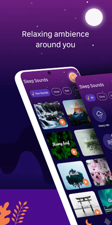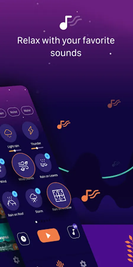 Many of us like natural rain sounds a lot. This Sleep Sounds - Sleep melodies & Relax Music app has many types of rain sound, such as Rain on Lake, Rain on Roof, and Rain on Window, and sound machine, which will help you to sleep easily. Suppose you lost in the forest you are in the best sounds relaxing of the birds, waterfall, brooks and many more. You also get the best experience of the environment of the night sleeping apps.