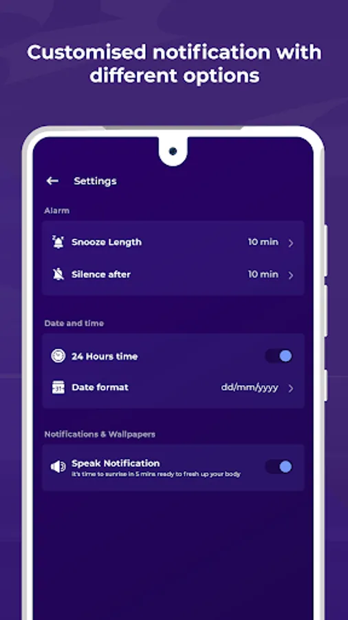 - Snooze Alarm : Add snooze minutes to your notification alarm for sunrise & sunset notification.