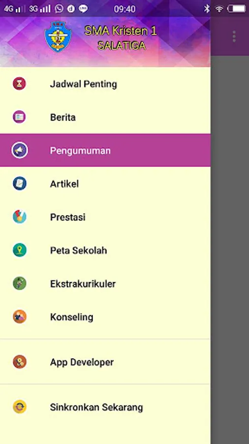 School App SMA Kristen 1 Salatiga memberi informasi tentang kegiatan sekolah, berita, artikel, dan kegiatan extra kurikuler