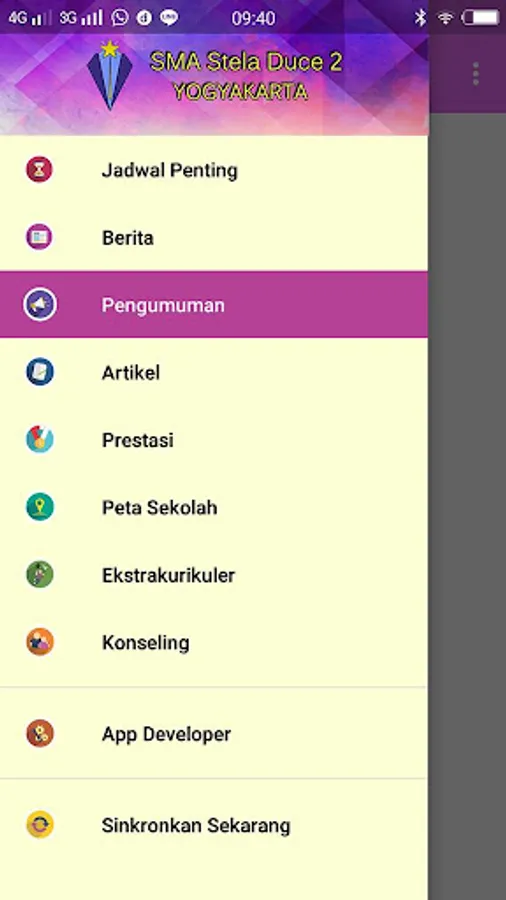 School App memberi informasi tentang kegiatan sekolah, berita, artikel, dan kegiatan extra kurikuler