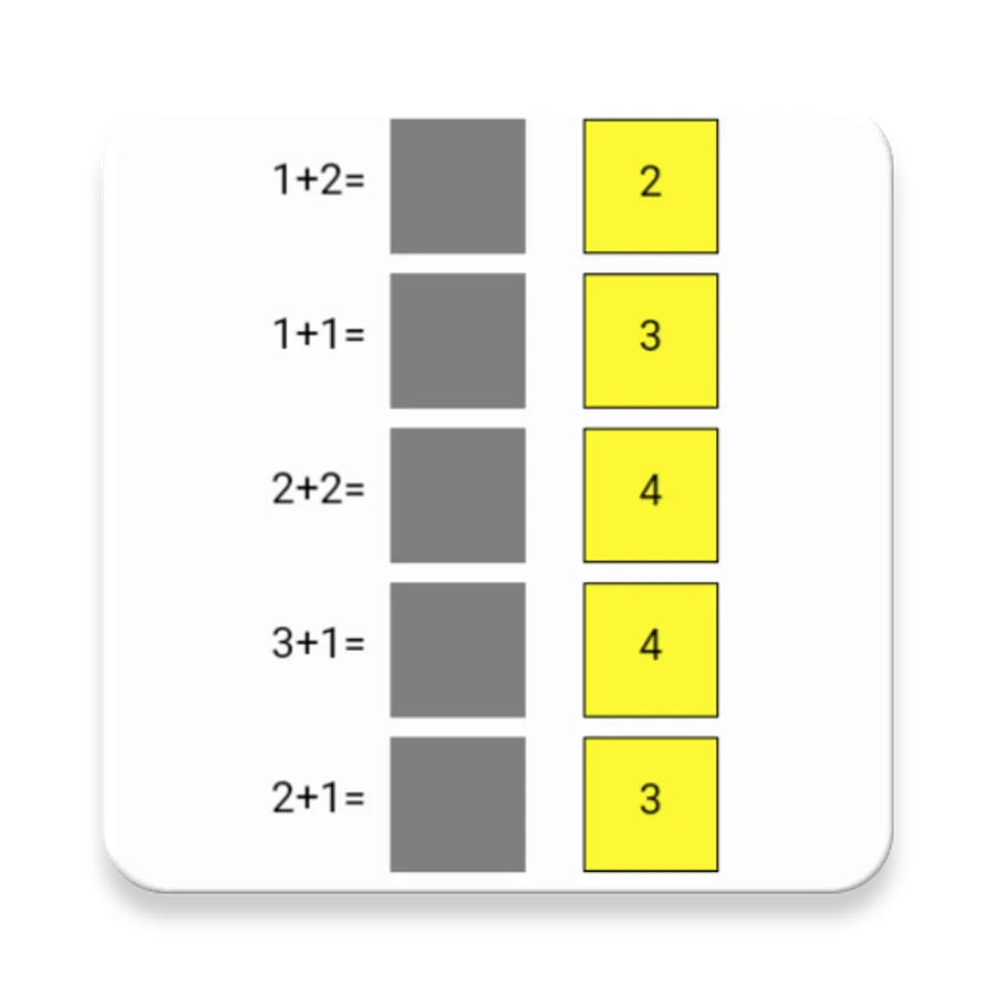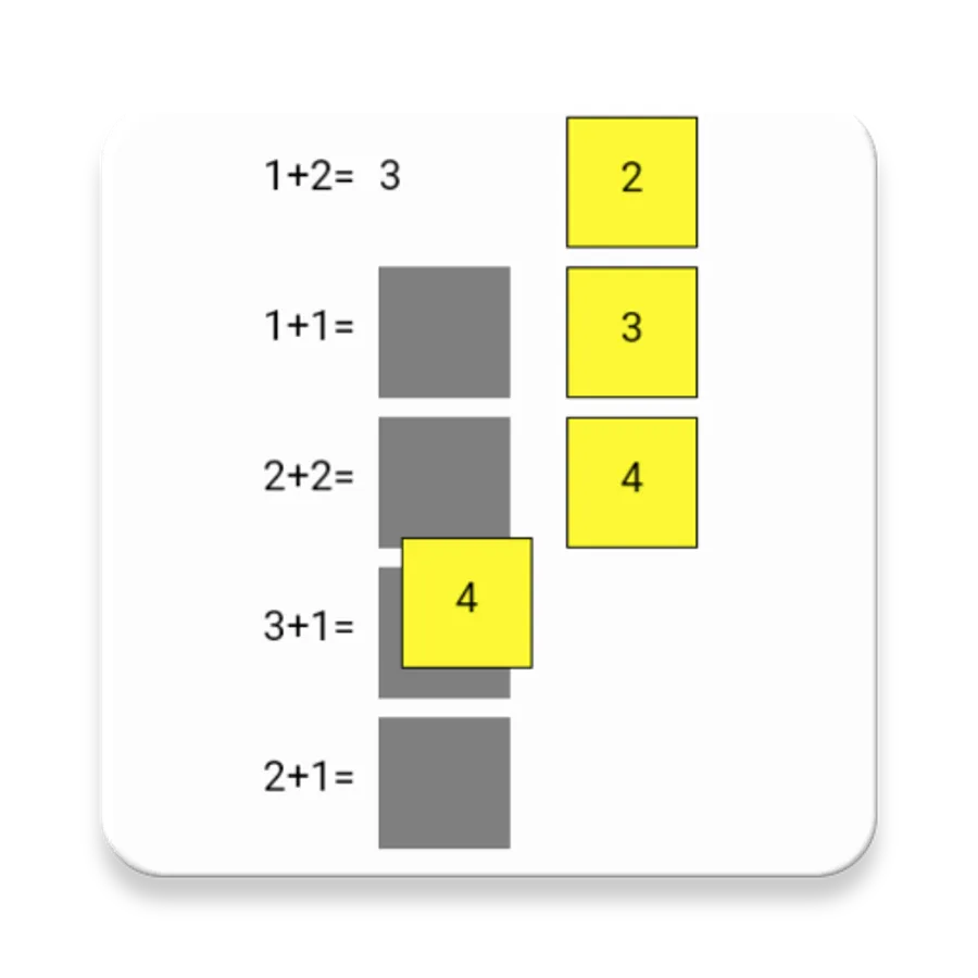 An app to learn addition with sums of up to 5. Drag and drop the right answer at the numbers.