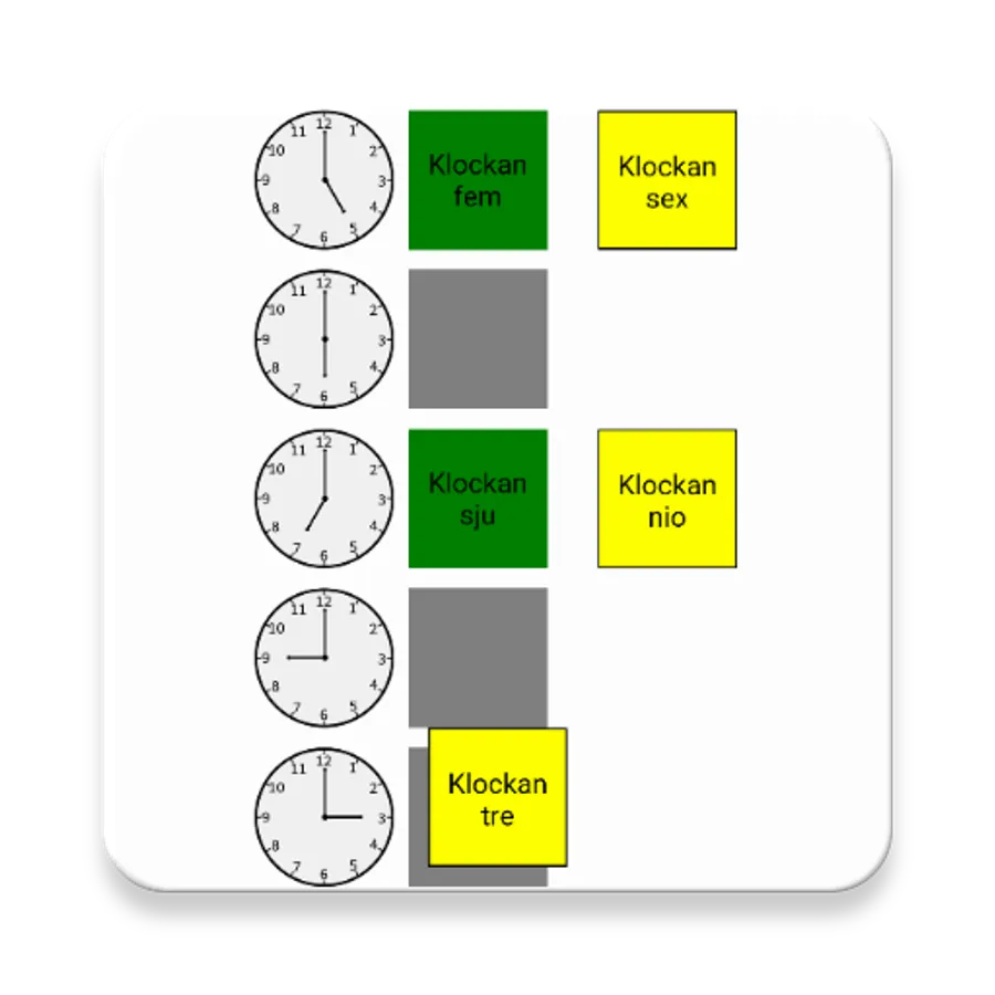 An app to learn the watch whole hours. Drag and drop right answers on the clocks.