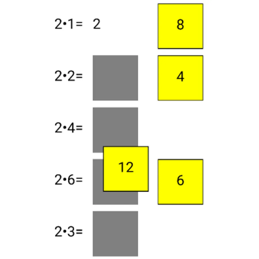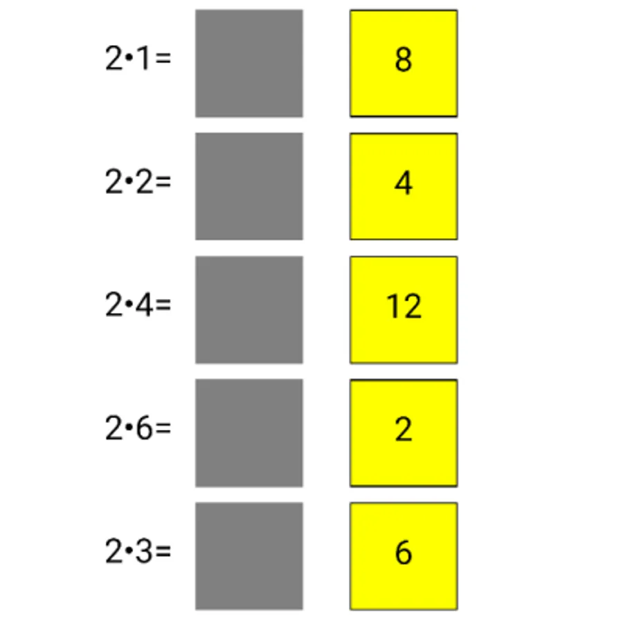 An app for learning 2nd table. Drag and drop the right answer at the quarters.