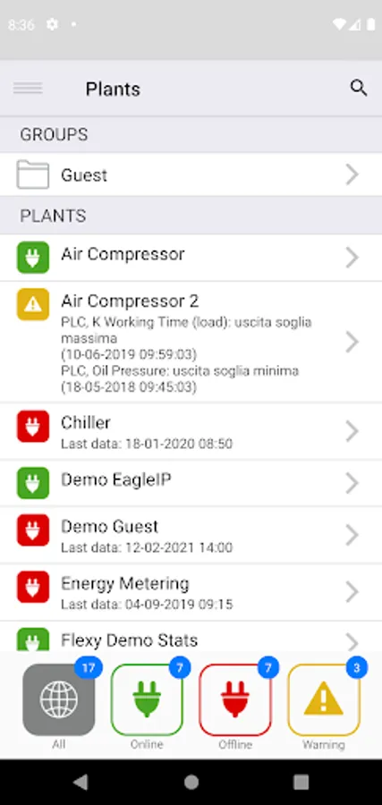 Receive push notifications when a device goes online or offline, or when an anomaly occurs on a system.