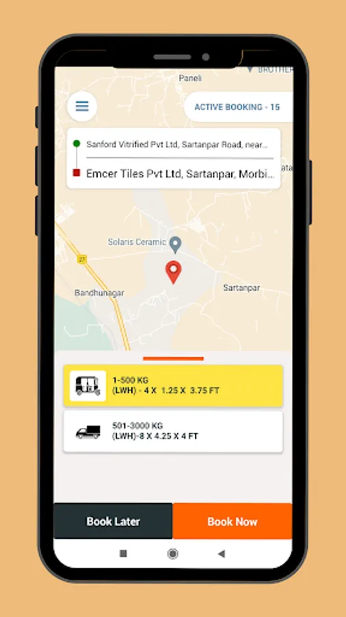 With the help of this app, you can easily book a load of small trucks within Morbi city from anywhere in the world for your tiles crossing service. You can enter your starting and ending destination. You can choose vehicle type and weight then you can book transport for morbi city.