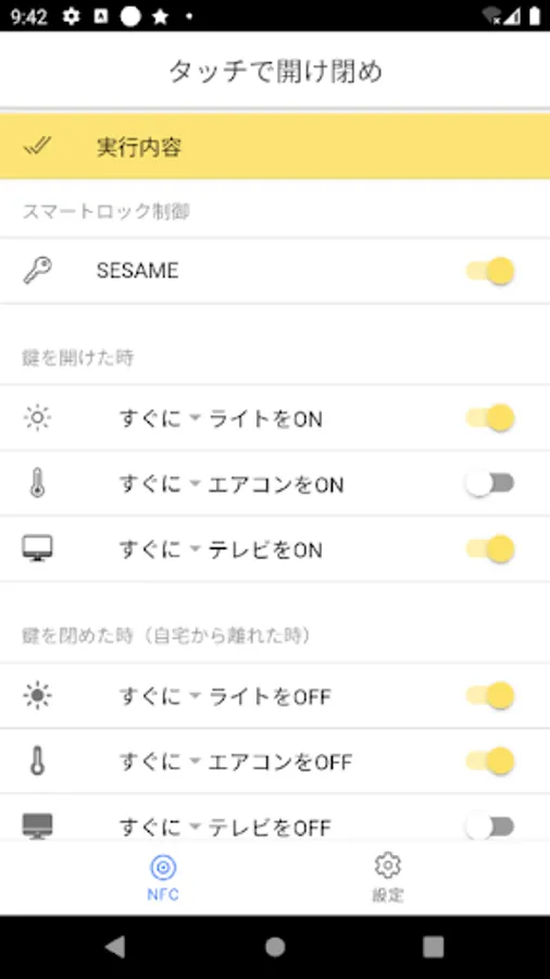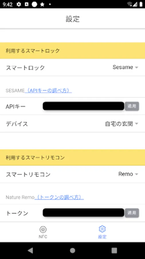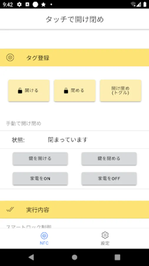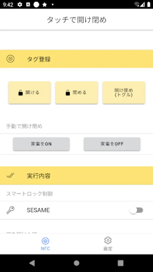 It is an application that allows you to open and close the sesame (smart lock) by holding your smartphone over the NFC tag. It can also be used with the old Sesami mini.