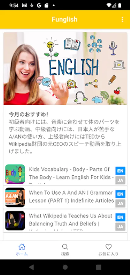 ・English and Japanese subtitle display (if the Youtube video supports it)