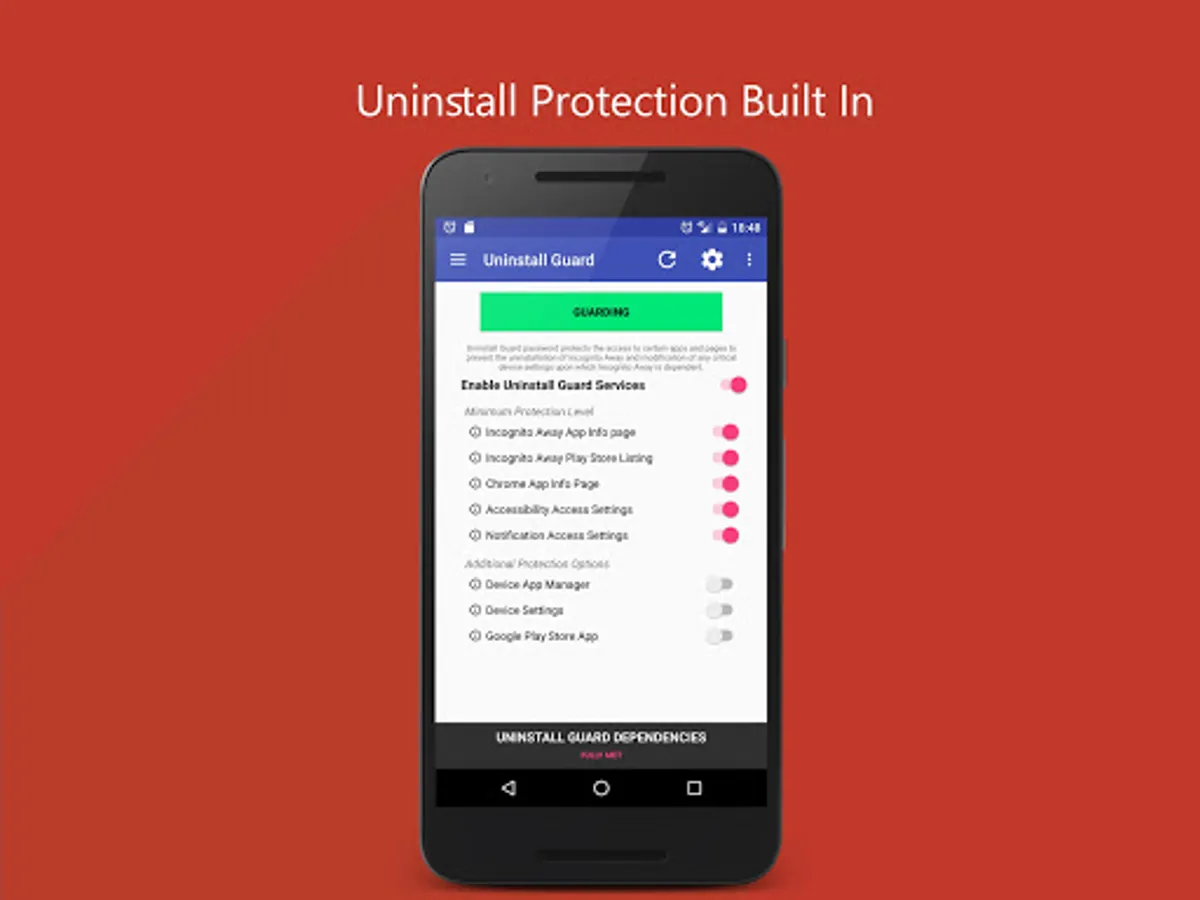 This prevents users from trying to uninstall Incognito Away or tamper with the device settings it depends upon.