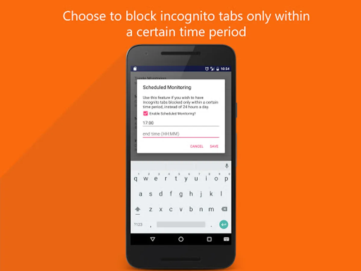 Choose to have Incognito Tabs blocked within a specified time frame – for example, from 9PM at night to 8AM in the morning.