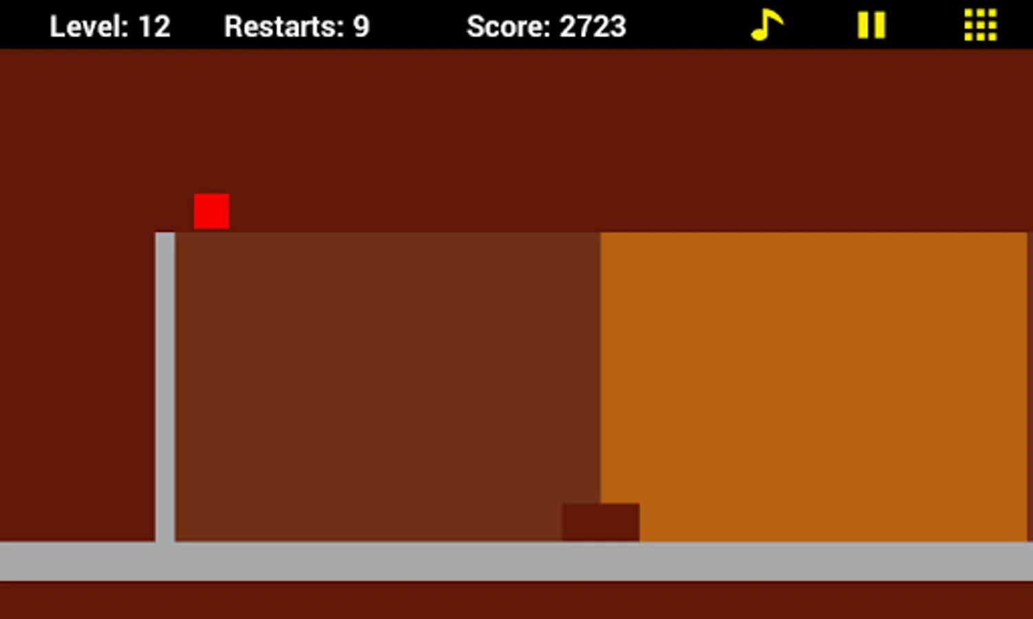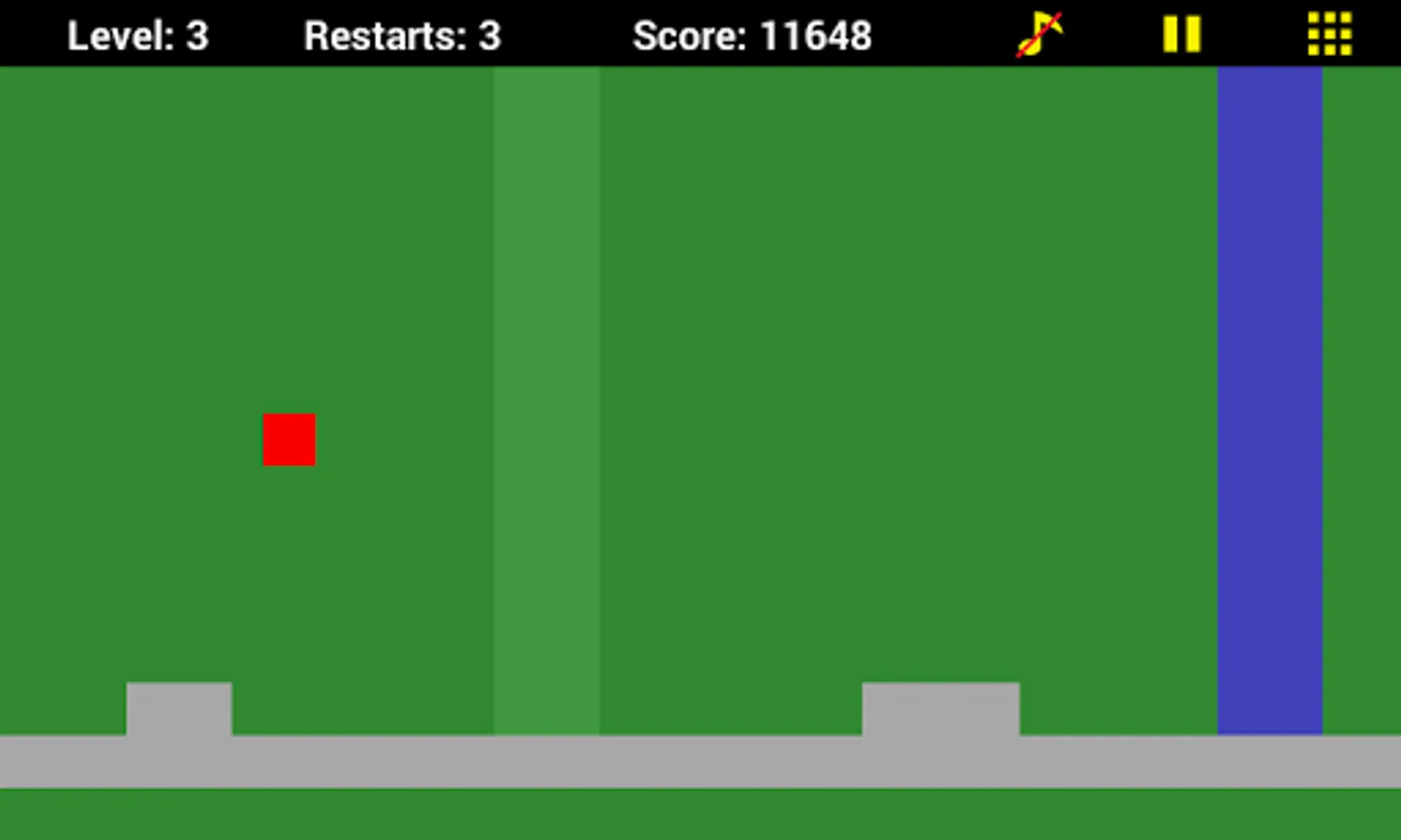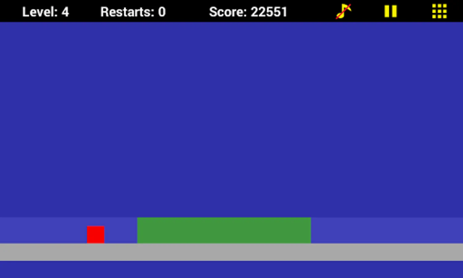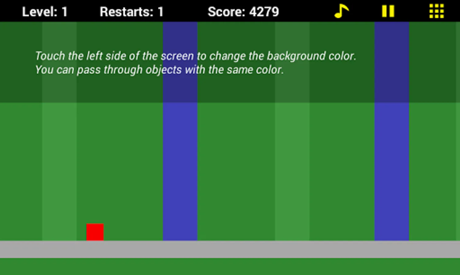 Navigate the red square through 15 of the 40 well laid out levels in the full version and try to avoid blocks moving towards you. To do that you can either jump over the block or if it is colored switch the background color. Blocks that have the same color as the background can't hit you. Unlock two of three different game modes and try to beat your highscore. Can you get through all of them?