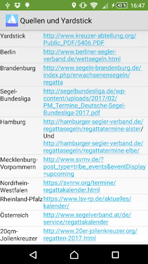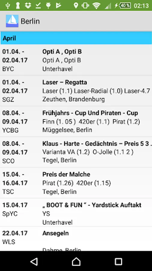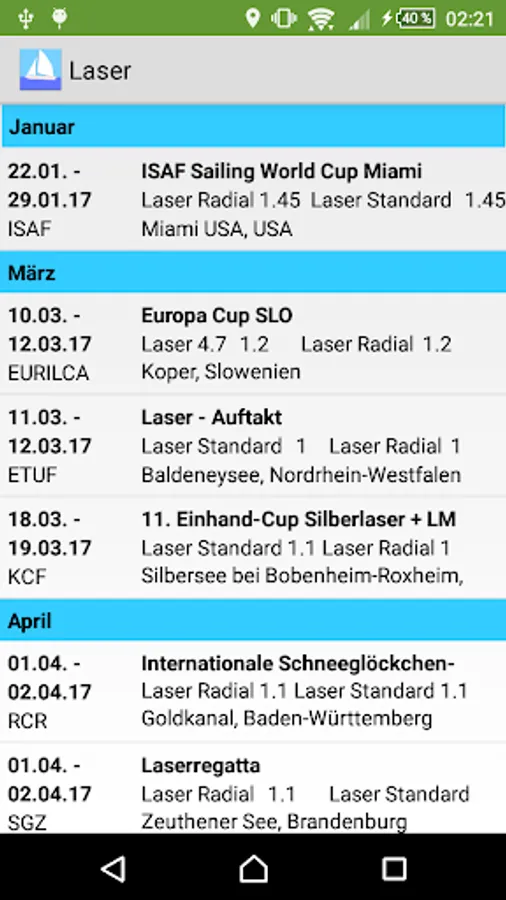 Regatta calendar lists all sailing regattas of the areas and class associations that responded to our request. (As of 2017) Regatta calendar offers: