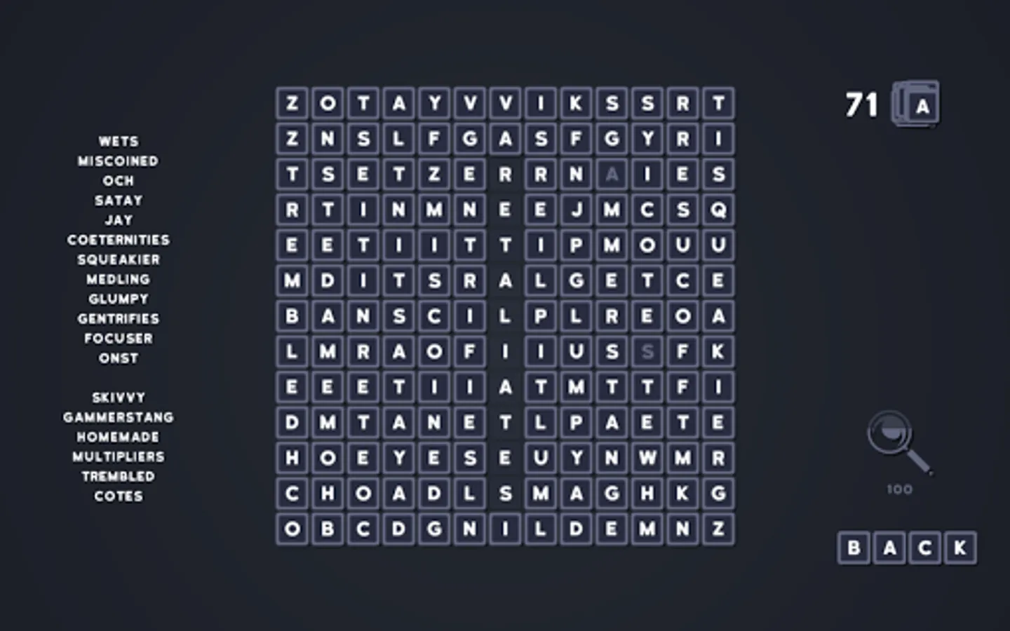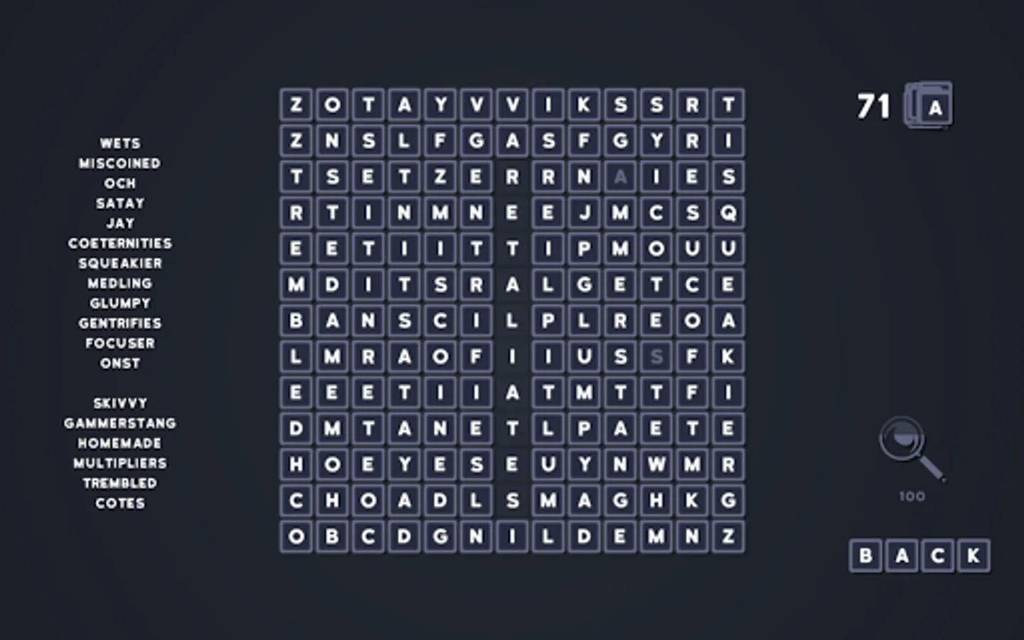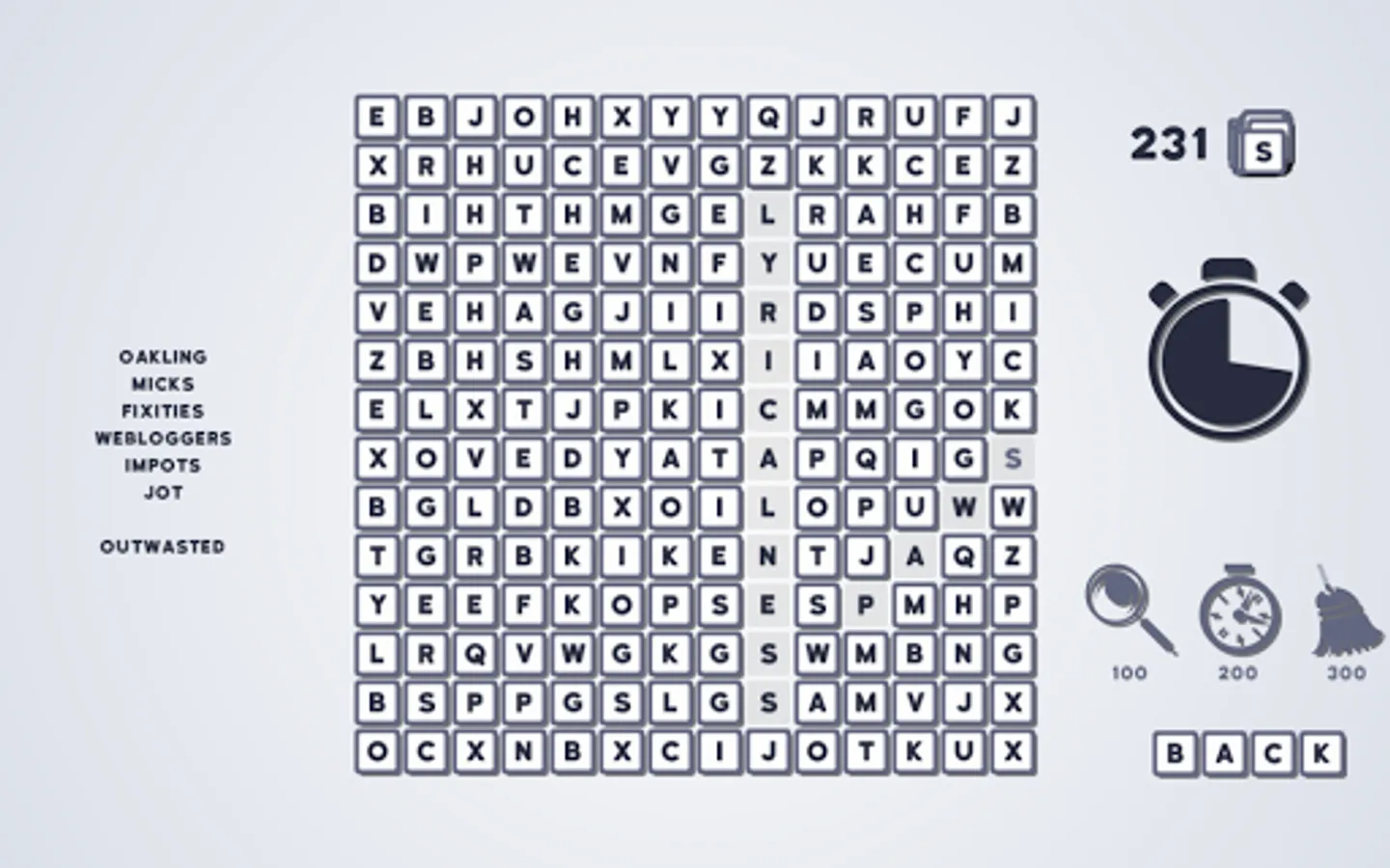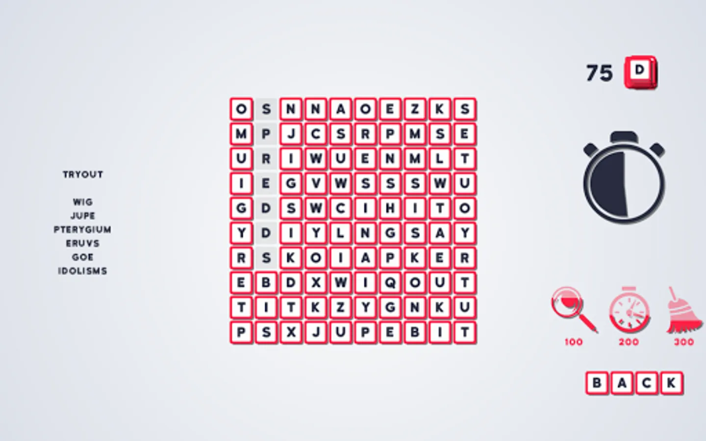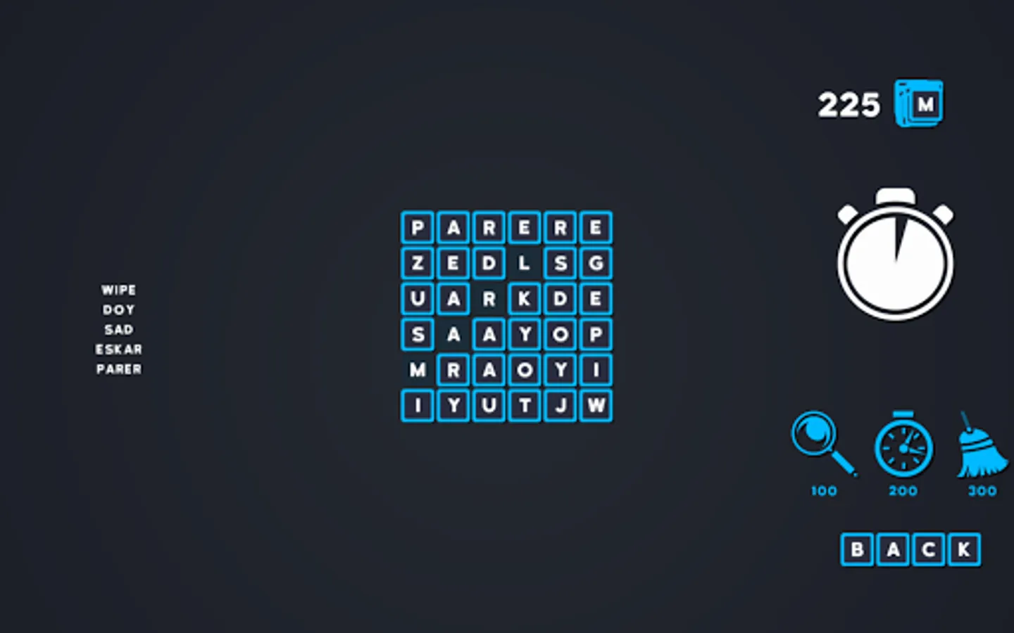 Rosette and Words is a crossword game puzzle where you must find words in a board full of letter tiles. On each level, you are provided with a list of words to find in a specific amount of time.