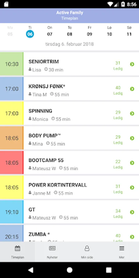 Use your phone to rebook, cancel or put you on the waiting list for group lessons at Active Family.