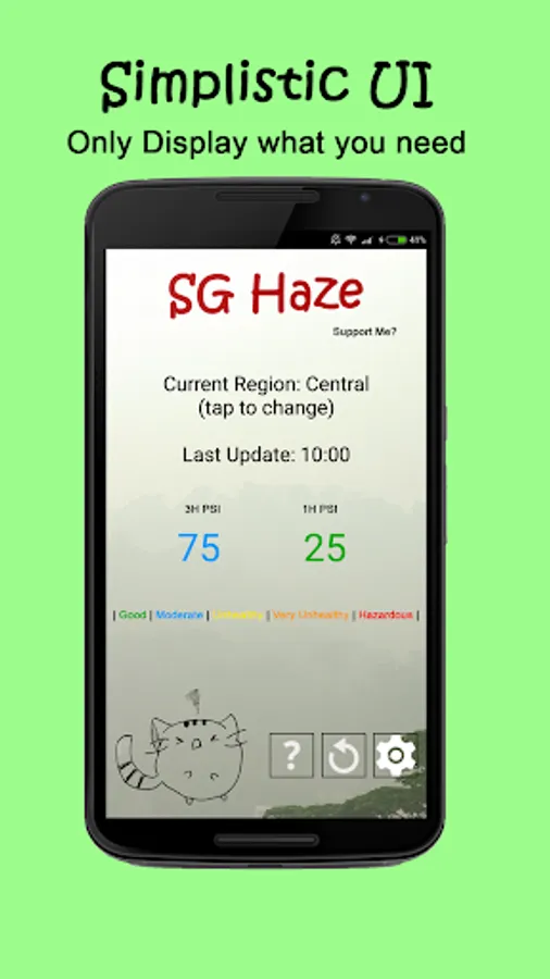 This app is used for reporting the haze situation in Singapore. (Singapore haze PSI conditions)