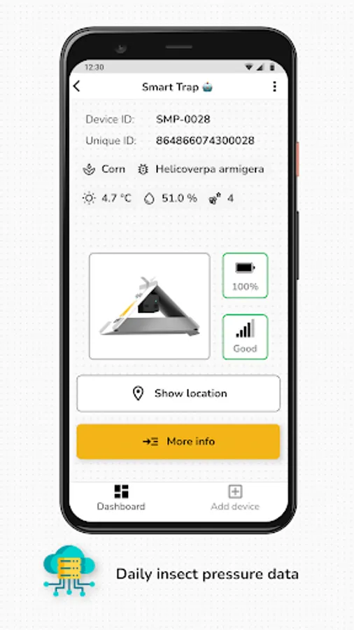The app allows farmers to easily view real-time data on pest activity and receive alerts when thresholds are exceeded. By taking proactive measures based on this data, farmers can protect their crops and improve yields.