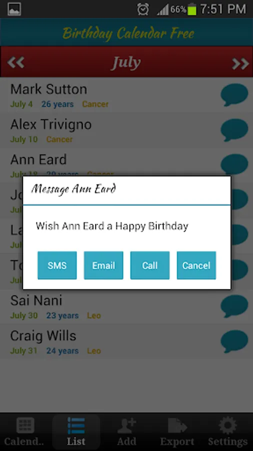 - Easily message your friends and wish them "Happy Birthday " along with custom message with just one click!