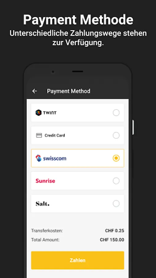 No problem - the quick version with an SMS, Twint or credit card - and the money is ready for use!
