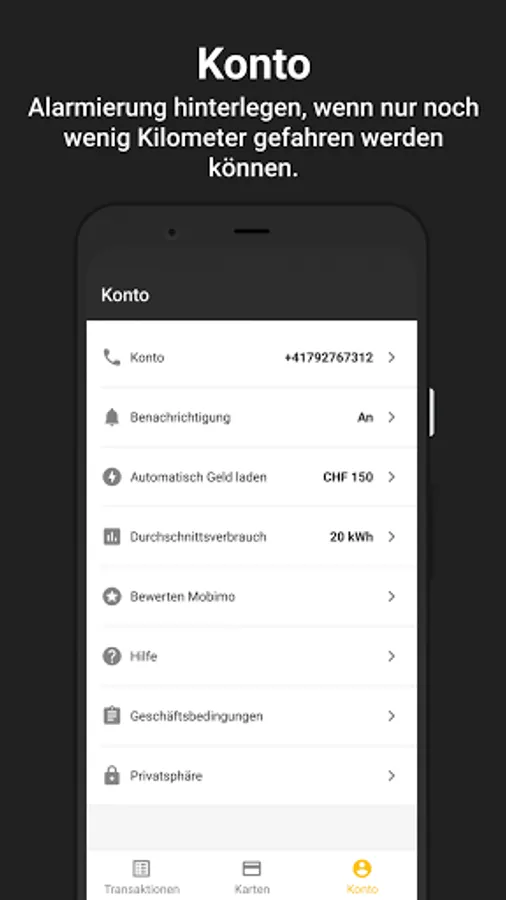 The mobilecharge app provides an insight into the energy consumption and costs of the charging stations at any time. Top up money immediately?