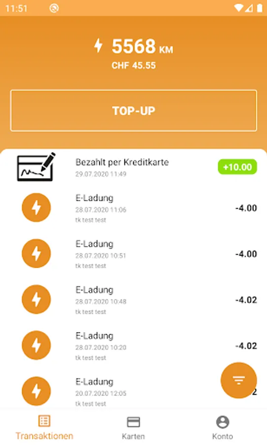 With the Mobimo E-Mobility App, you always have an insight into the charges made and the costs incurred as a result. The prepaid credit is loaded quickly and directly via SMS, credit card or TWINT.