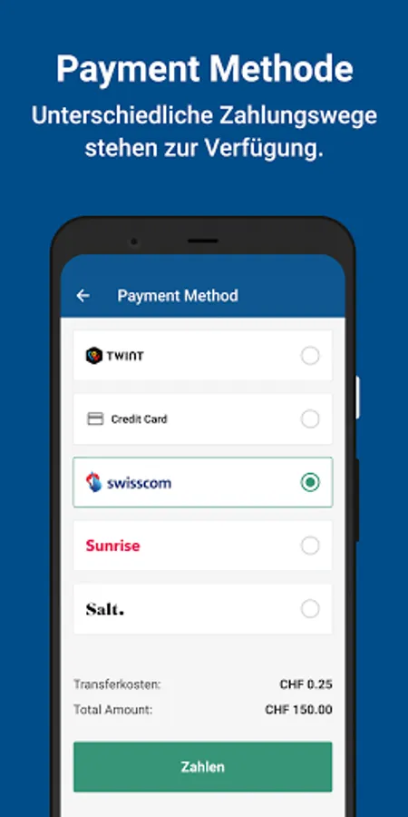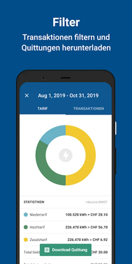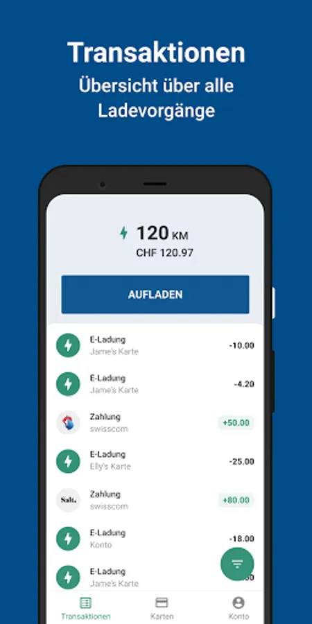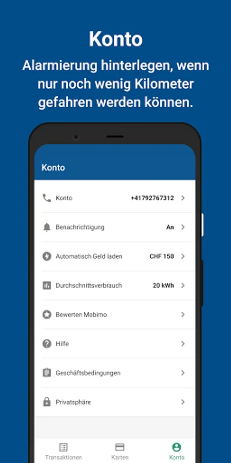 The PAC e-mobility app provides insight into the energy consumption and costs of the charging stations at any time. Top up money immediately? No problem - the quick variant with an SMS, Twint or credit card - and the money is ready to use!