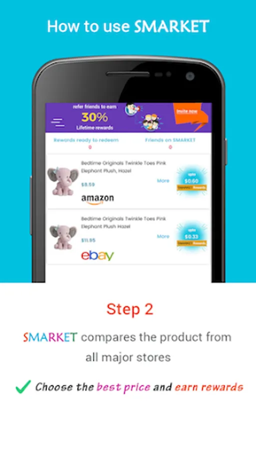 Use the SMARKET app to compare prices to save money on a wide range of products from different genres and refer with your friends and receive 30% bonus rewards for lifetime.