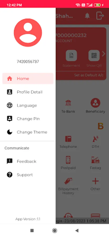 You can also access your accounts balance, and statements all through our app. Our DTH recharge feature allows you to recharge your TV with ease, and our bank-to-bank money transfer feature makes sending money to friends and family a breeze.
