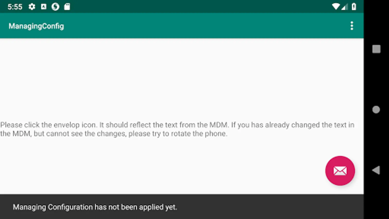 The only purpose of the application is to test Managing Configuration through MobileIron and BlackBerry MDMs.