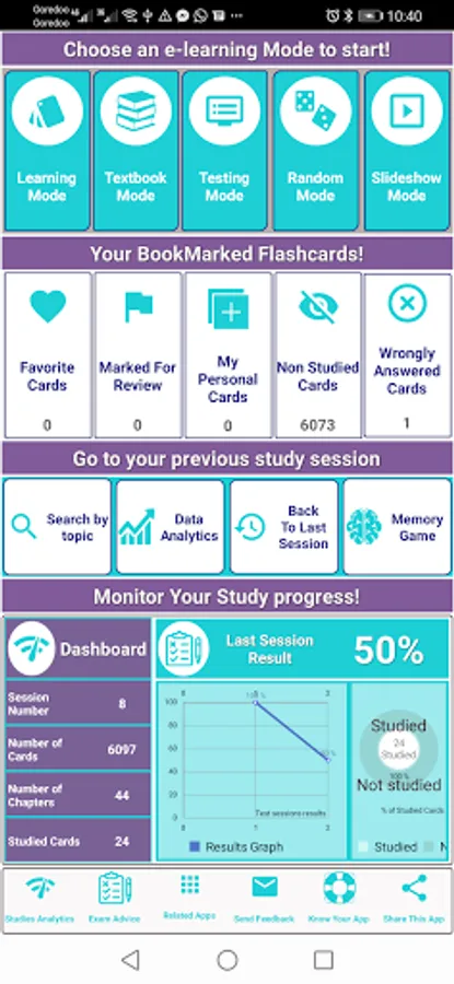 - Five study Modes (learning mode, handout mode, test mode, slideshow mode and random mode).
