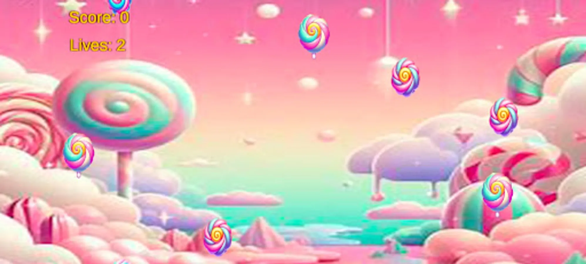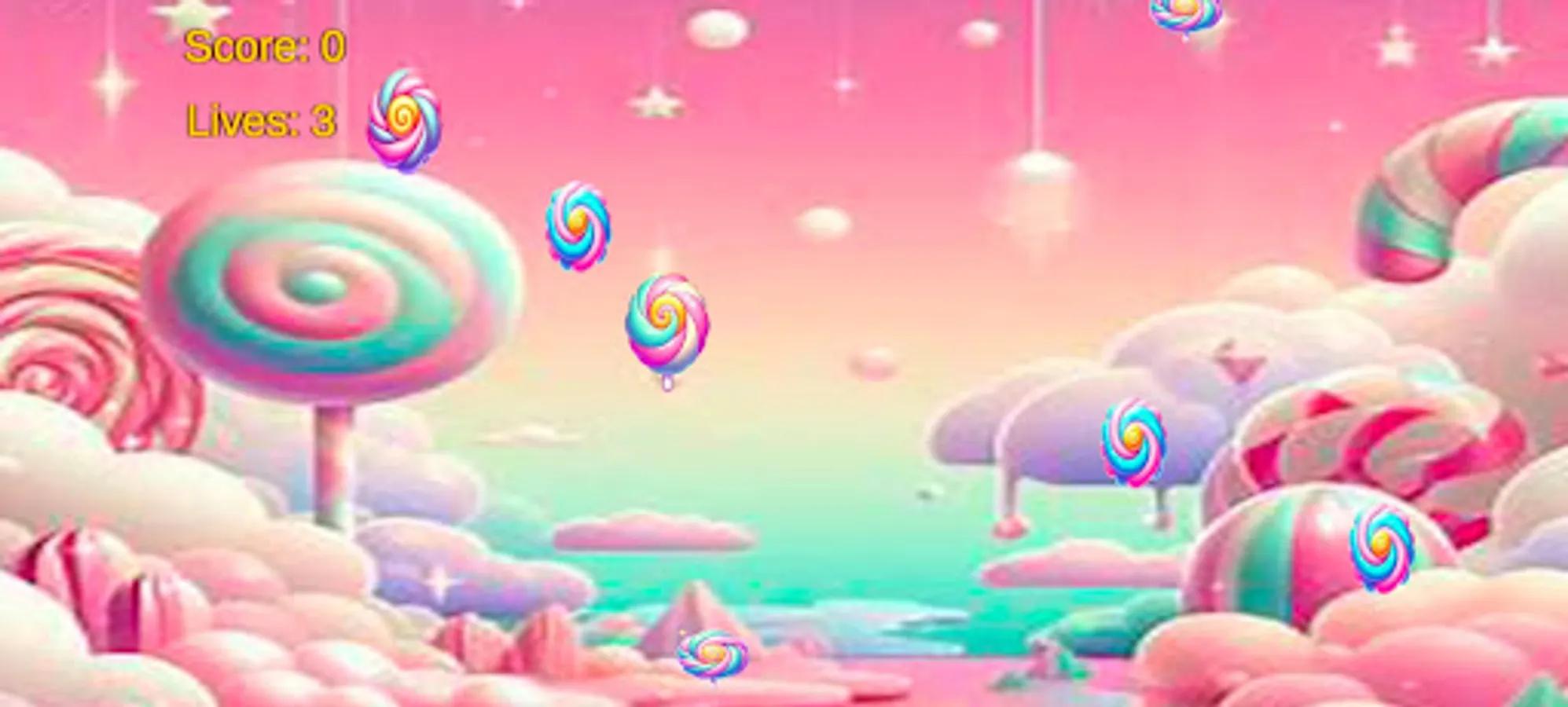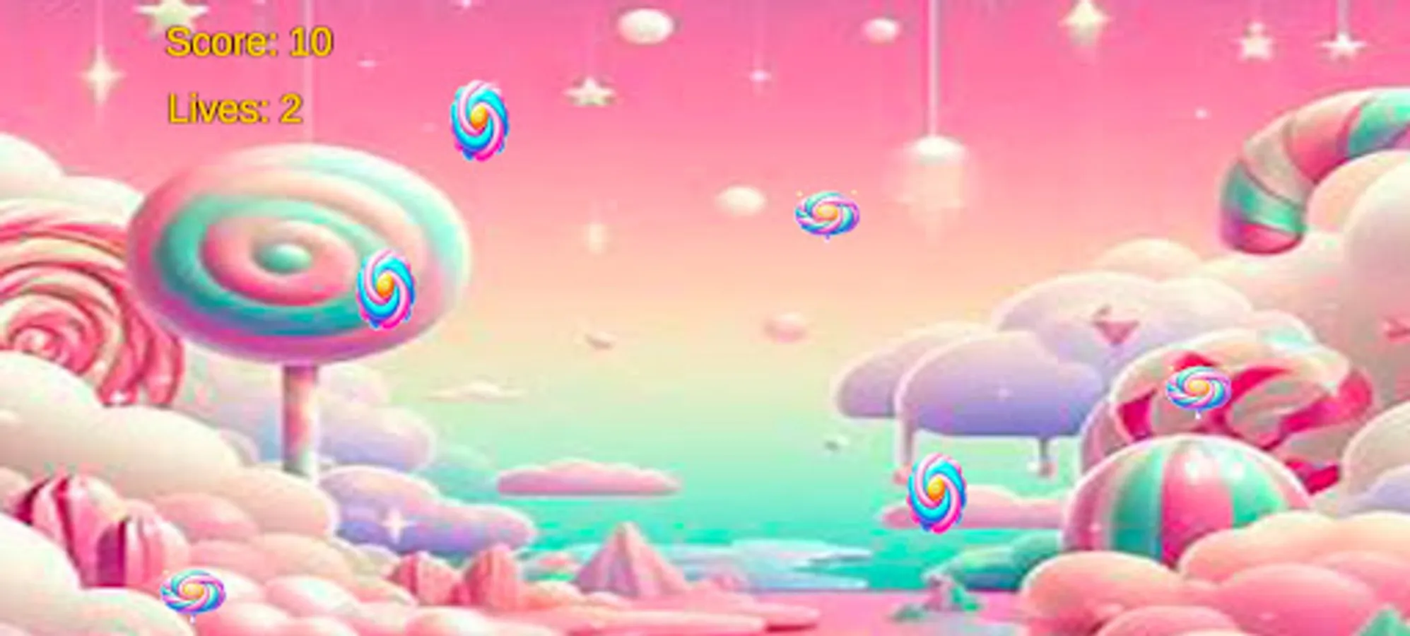 The candy clouds rise faster as you play, challenging your reflexes and timing.