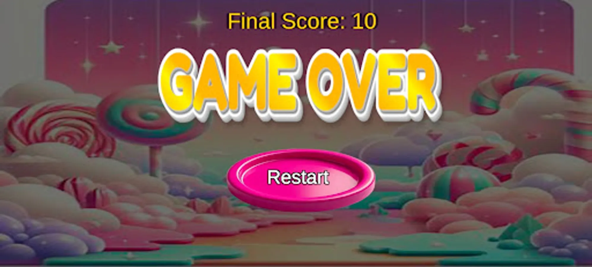 Miss three target candies or tap the wrong one, and the candy sky melts away.