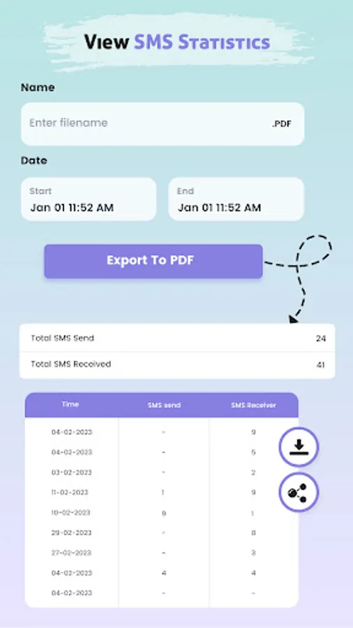 - With SMS statistics, you can find out how many SMS are sent and received every day as well as how many SMS are sent and received overall within a given time period.