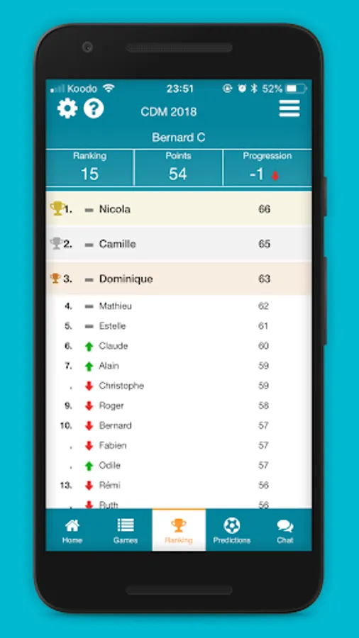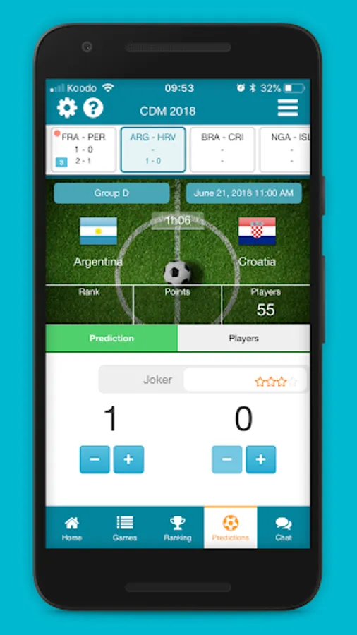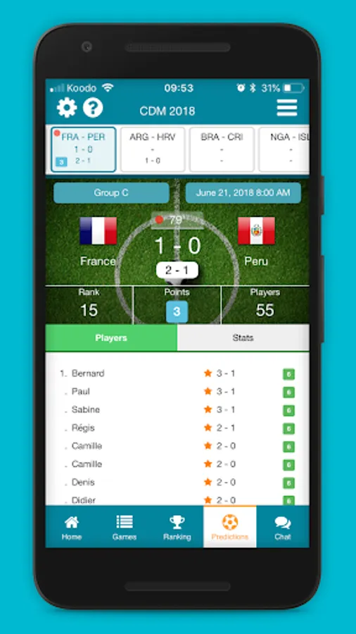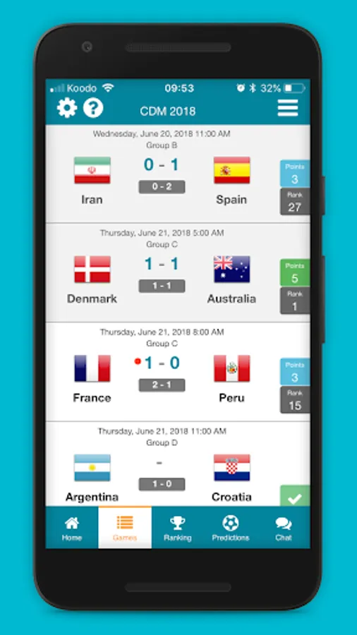 You can predict all games of a specific event (ie: soccer world cup ) and compare your result with your friends. Sporteager calculate automatically your ranking even during live events !