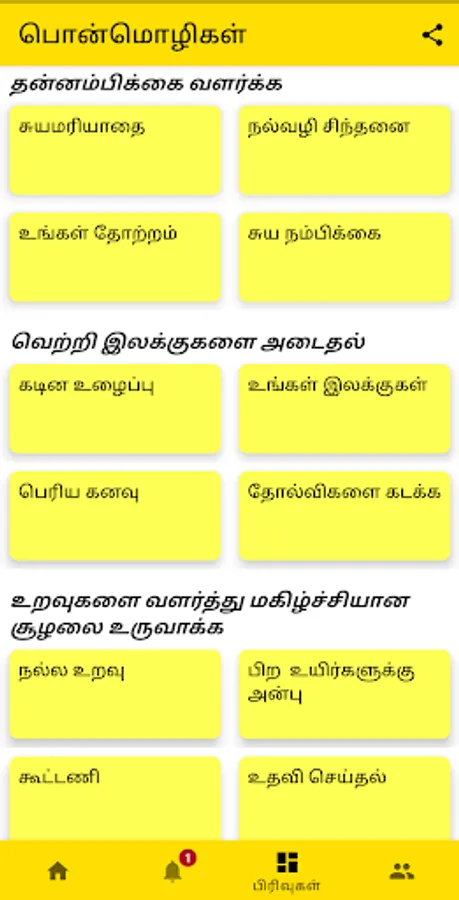 Tamil Quotes brings daily notifications that are very powerful and effective way to keep yourself inspired during tough times and also to stay inspired towards your goals.