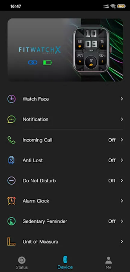 Pairing any of smart watch Fitwatch X Series to your phone and giving full permissions to it, you will find so many great features on the APP where is full of direct visual and concise UI(User Interface) of the APP and allows you to synchronize and check your activities data, like steps, calories, distance, and the records of the sports modes, as well as the data of heart rate, sleep tracking, stress etc. from your watch. And you also can turn on the notification which allows you to receive messages on your watch, the incoming call to receive calls on your watch, the dial to change and personalize your watch face, anti-lost reminder, Do Not Disturb mode, alarm clock, sedentary reminder, raise to wake, heart rate monitoring, schedule, phone camera control, languages settings, FW update, phone book and other settings for your watch.