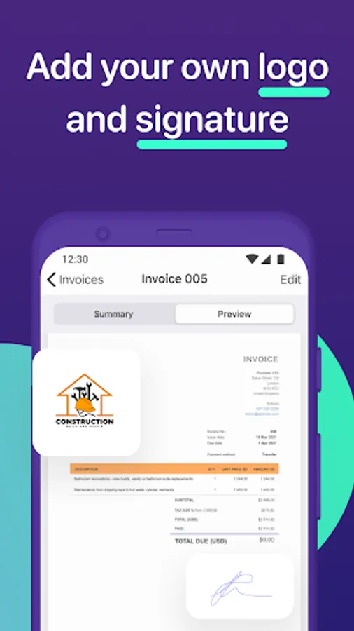 Unlimited Invoice generator app, the ultimate invoice maker: Send simple free invoices using professional templates, invoice generator, PDF invoices and quotes, Whether you need to create a construction invoice, business receipt for your side gig or small business.