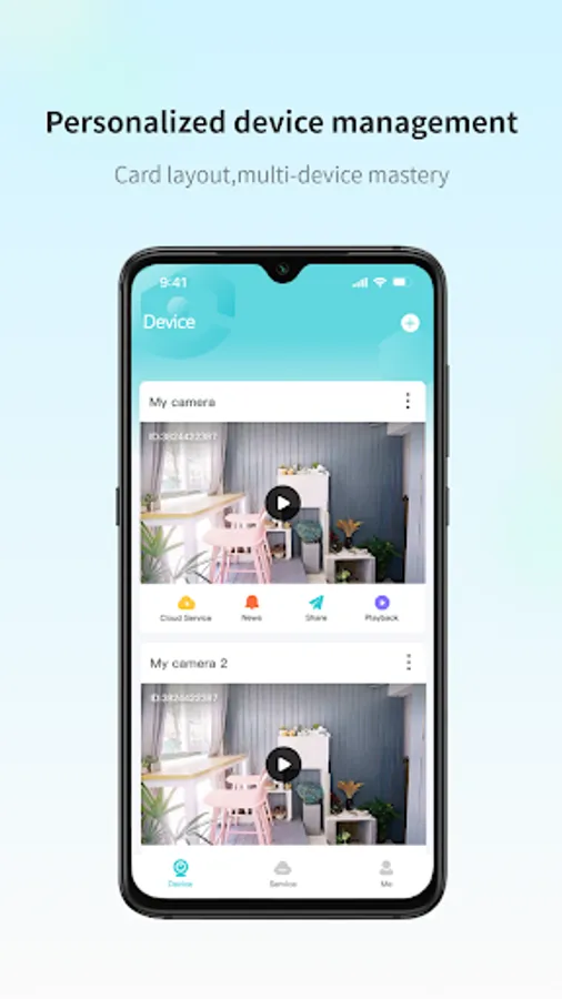 Video service: Through the cloud video service, view real-time monitoring and retrieve playback images.