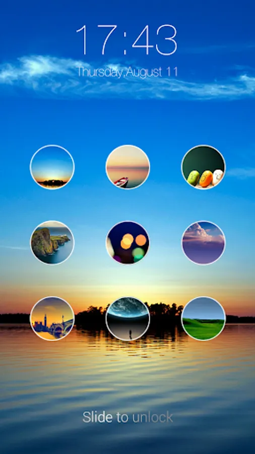 With this pattern screen lock you can not only Slide to unlock your screen lock,but also Set pattern password to enhance your phone security.