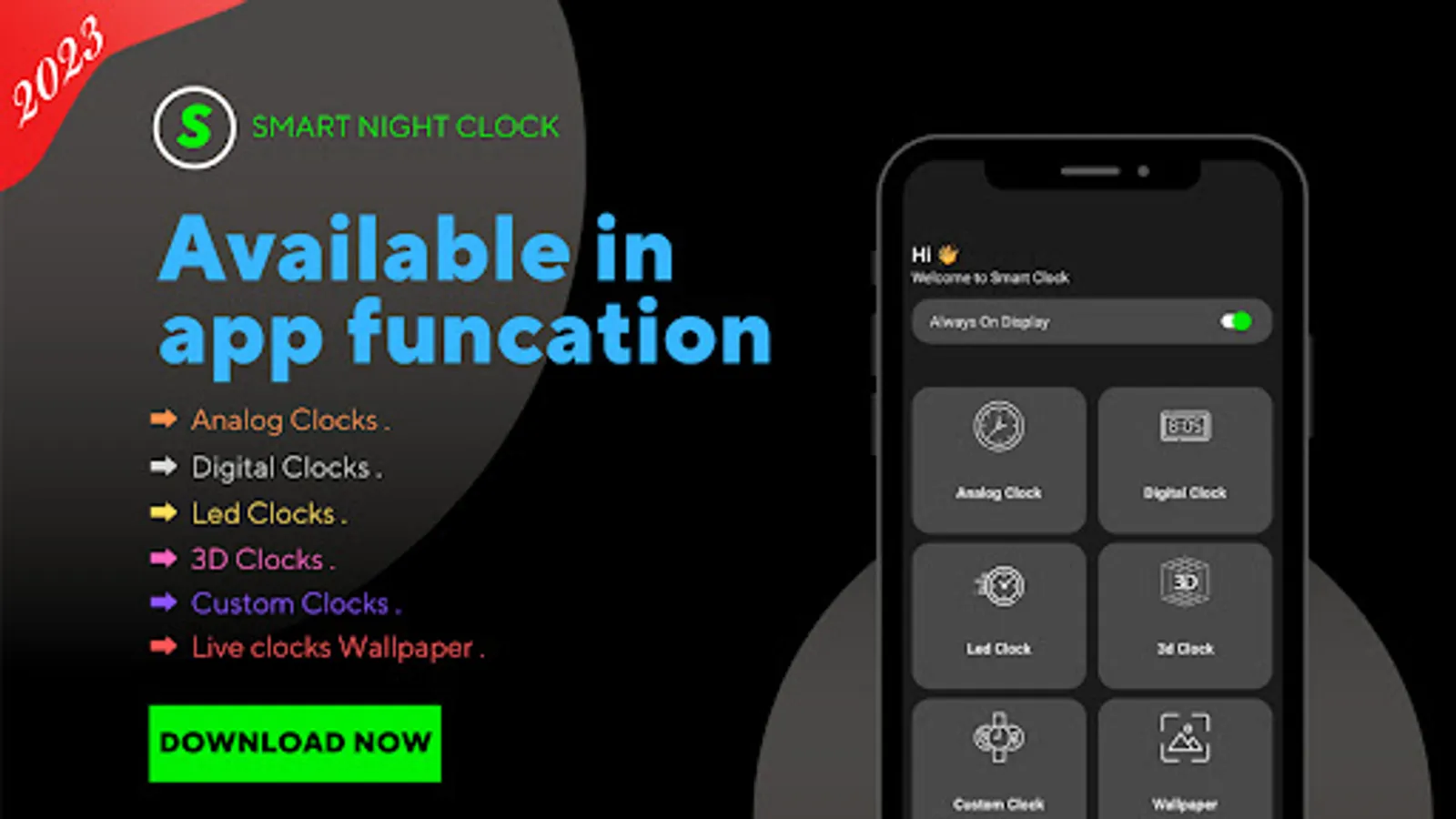 Smart Night Clock Alarm Clock is free to use. App theme in material UI. Using this app you can set time different time themes with different functions time clock, analog clock with real-time