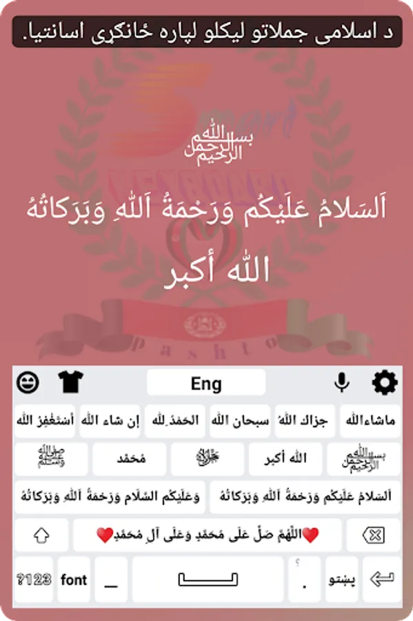 This Pashto keyboard is designed for those people who want to write pashto language posts,messages,pashto topics, and Islamic sentences.
