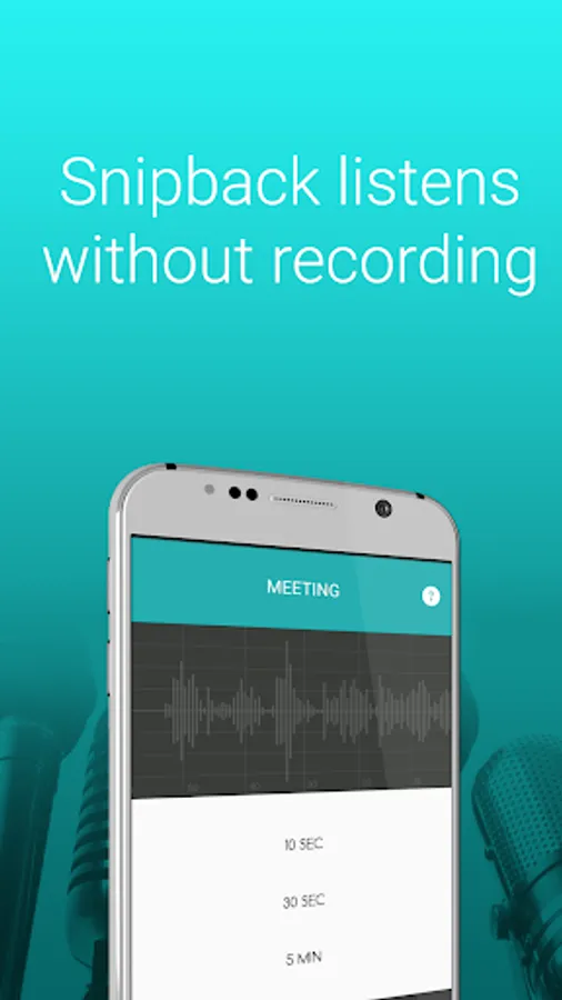 With this recording app, you simply put your smartphone in listening mode: after you have heard anything interesting, you press RETRIEVE AUDIO, and Snipback will save the last seconds of audio, from the past. Stop recording big audio files: in this way you won’t have big audio files, but small and perfectly arranged audio notes. Thanks to this smart approach to voice recording, you can take free audio memo out of a conversation, and save hi-res voice notes without running out of memory. It also works as a standard hi-res recorder if you need. Moreover, thanks to its noise reduction feature, you will always get high quality audio recordings. Do you need to record a conversation? No problem, Snipback also comes with a hidden voice recording feature! Make sure you don't infringe any local law about privacy when recording in incognito mode.