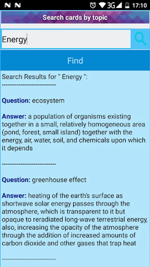 - Search flashcards by key words.