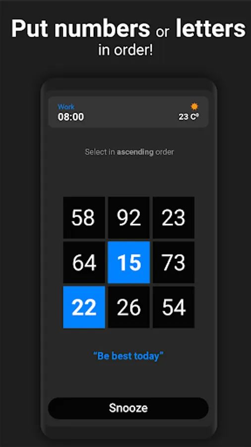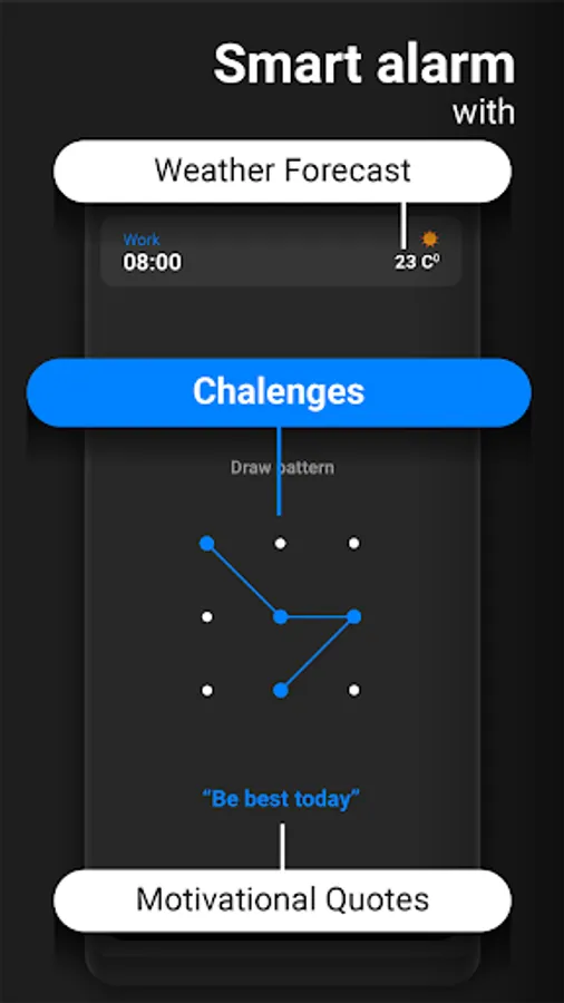 Tired of pressing the snooze button? Be 100% awake with ⏰ Easy Wake Up! Super Smart Alarm Clock for heavy sleepers ⏰. It is not possible to fall asleep again and be late for school, work or important date. Choose the smart alarm challenge and wake up immediately! Read a new motivational quote every morning, see what's the weather like outside and get ready for a new day and a new chance for success!