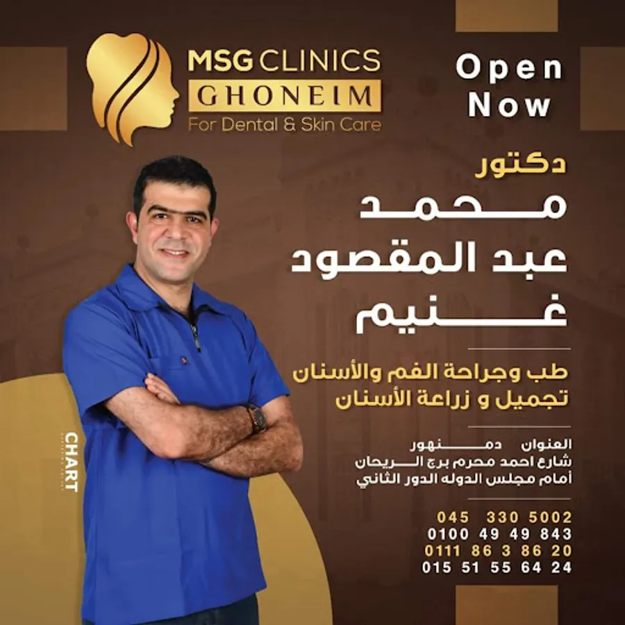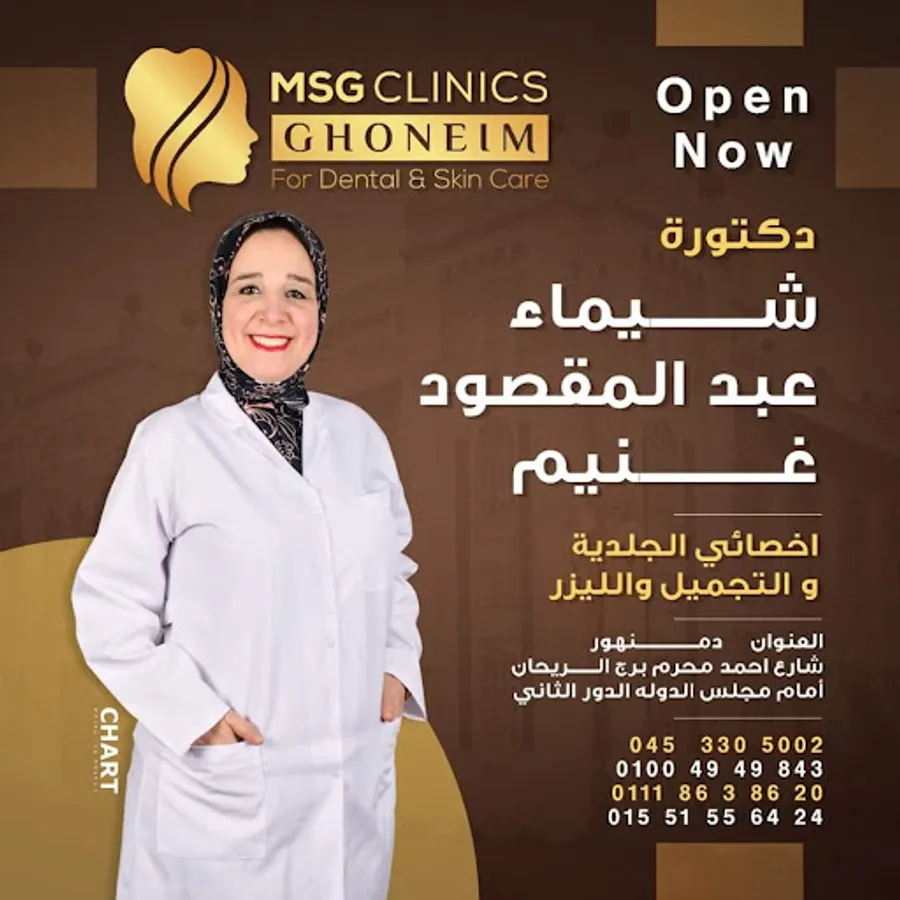 The Ghoneim dental, leather and laser clinics group is a medical edifice that is presented for the first time in Beheira Governorate with the latest therapeutic techniques and international devices and providing a high level of luxury to the customer to benefit from the offers from major hotels, tourist villages and restaurants.