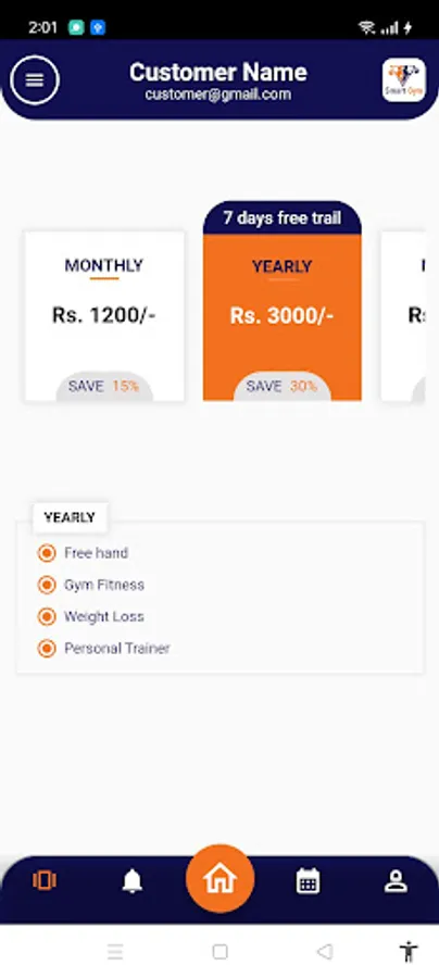 Smart Gym app is used by the members of the gym. The users can view their information, attendance details in the app. The app lets users know about the information of the available packages. Users can view their previously bought subscription in the profile section. This app does not support in-app purchases. Admin enroll gym members into their chosen plans and then gym members can view their plans.
