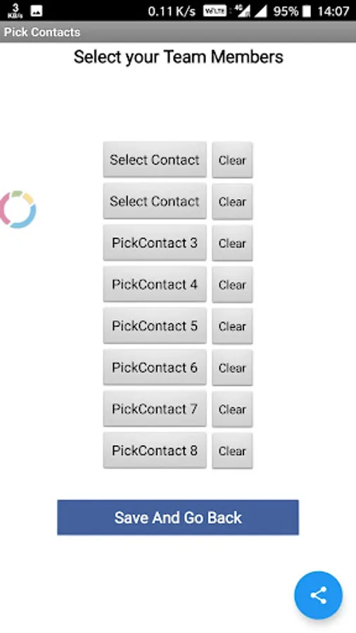 Tapping over a section will send sms to people you have selected from your contacts