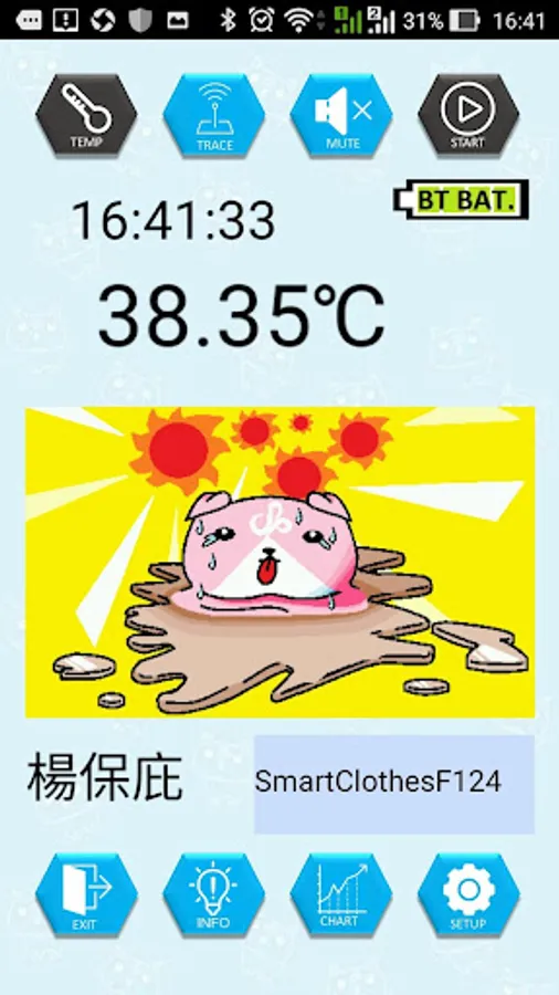 1. This wearable temperature sensing product: temperature sensing module, specially designed and made clothes and free Android APP.