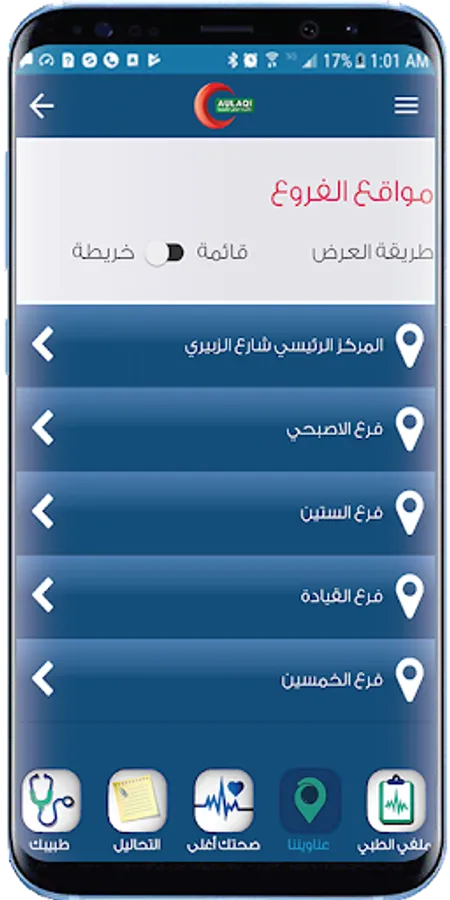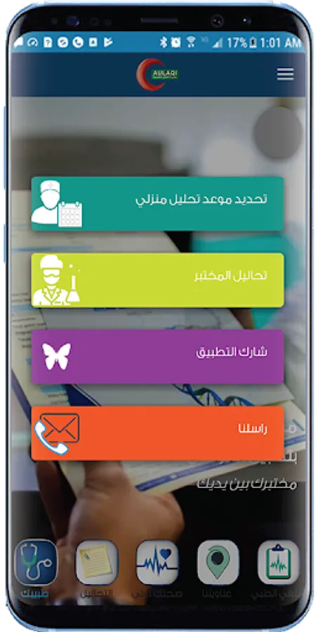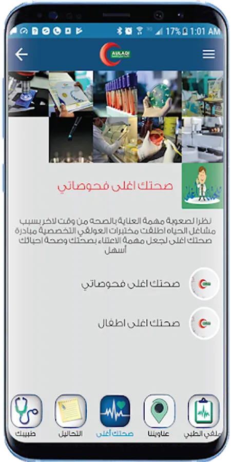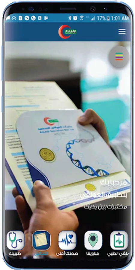 The application of Aulaqi Specialized Laboratories is characterized by : *archiving all your and your family medical tests. *Available medical tests window and a short overview. * A window into many medical specialties. *A window containing medical packages for a comprehensive tests. *Aulaqi Specialized Laboratories Branches' Locations. *Making an appointment for home tests. *Communication with the laboratory.