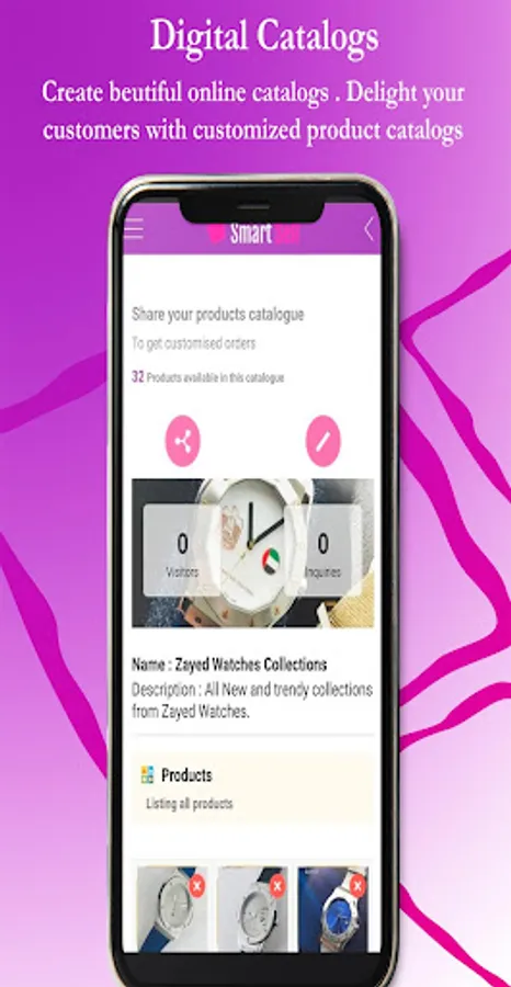 SmartSell Mobile App help you to launch your online store in Minutes. You can make beautiful product catalogs on your phone, share with your customers easily through whatsapp or any social media and start receiving online orders directly to your SmartSell Mobile app. Smarsell allow you to share your digital catalogues (catalogs) on different social media apps such as Whatsapp Business, Whatsapp, Facebook, Instagram etc. SmartSell giving you free website for your shop as well so that you can share the website and start receiving orders to your Smarsell mobile app.